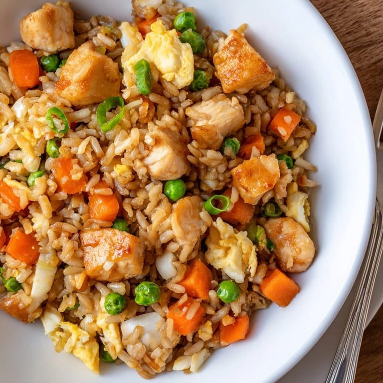 Pin it The smell of sesame oil hitting a hot wok always pulls me into the kitchen, no matter what I was doing before. I started making chicken fried rice during those exhausted weeknights when takeout felt like too much effort but I still wanted something that tasted like a treat. Theres something deeply satisfying about turning leftover rice into this fragrant, golden-studded dish that comes together faster than delivery could ever arrive.