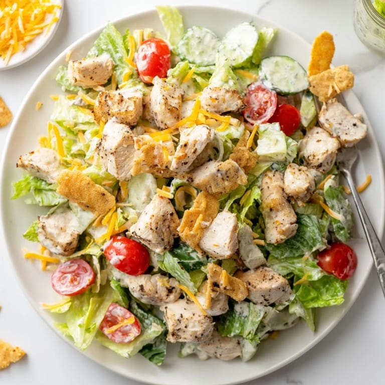 Pin it The kitchen counter was chaos when I first attempted this salad, blender whirring, chicken sizzling, and my friend Sarah hovering over my shoulder asking if I was sure about the jalapeños. That first batch had us coughing through the fumes but grinning through the heat, and weve been making it for summer dinners ever since. Something about that creamy ranch with its bright kick just makes a weeknight feel special.