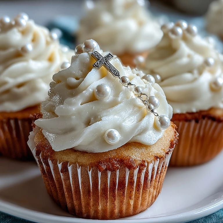 Pin it My sister called me in a mild panic three weeks before her daughter's First Communion—she needed something special, something that felt celebratory but also delicate enough to match the solemnity of the day. I found myself standing in my kitchen on a quiet Saturday morning, thinking about how a tiny cupcake could somehow capture both joy and reverence. These mini vanilla cupcakes with fondant rosary toppers became our answer, each one a small edible prayer wrapped in buttercream. The process of hand-rolling those fondant beads and crafting miniature crosses taught me that sometimes the most meaningful desserts are the ones made slowly, with intention.