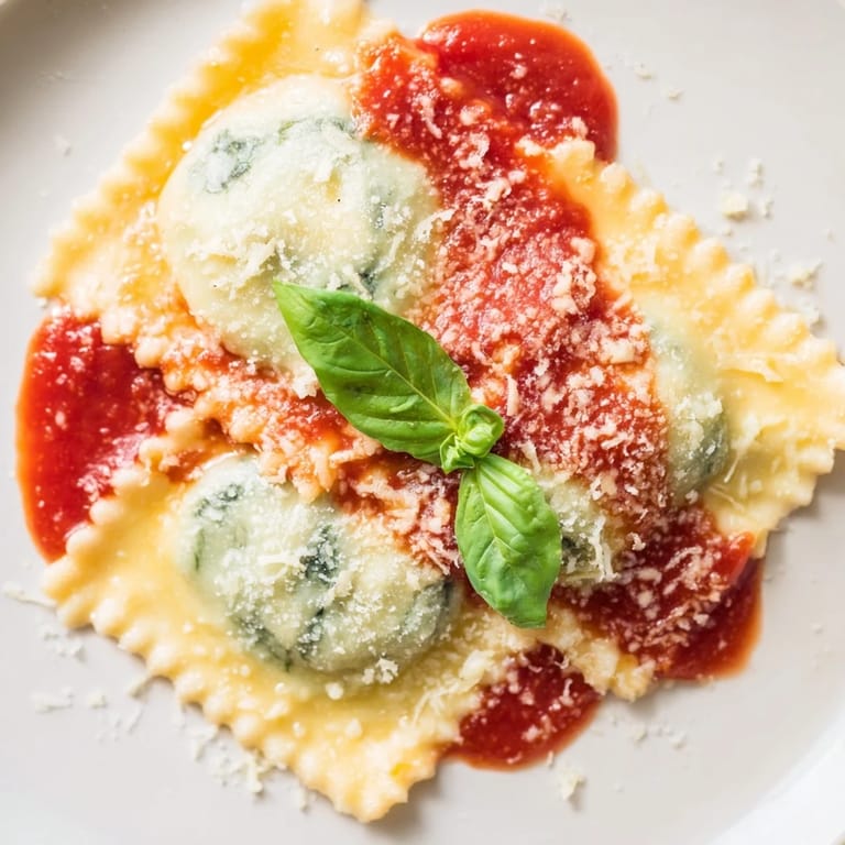 I made this for my sister's birthday once, and she sat at the table watching me plate each ravioli like it was a tiny work of art. She said it tasted like comfort, which is exactly what I was hoping for. We ate slowly, talking about nothing important, and the marinara sauce left a little red smudge on the rim of her wine glass. That night, the recipe stopped being just instructions and became something I'd make again and again for the people I wanted to feed well.