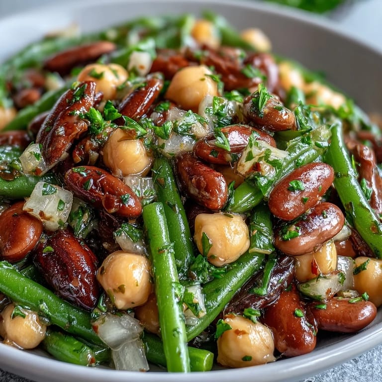 Pin it Three-bean salad has become my reliable answer for whenever I need something that's genuinely nourishing, visibly appealing, and requires zero fussing once it's made. It reminds me that the best recipes are often the simplest ones.